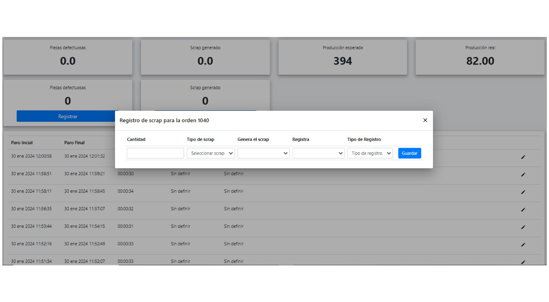 Para cada lote, se puede registrar SCRAP, con el fin de tener mediciones precisas del COSTO DE MALA CALIDAD para cada producción y/o máquina.