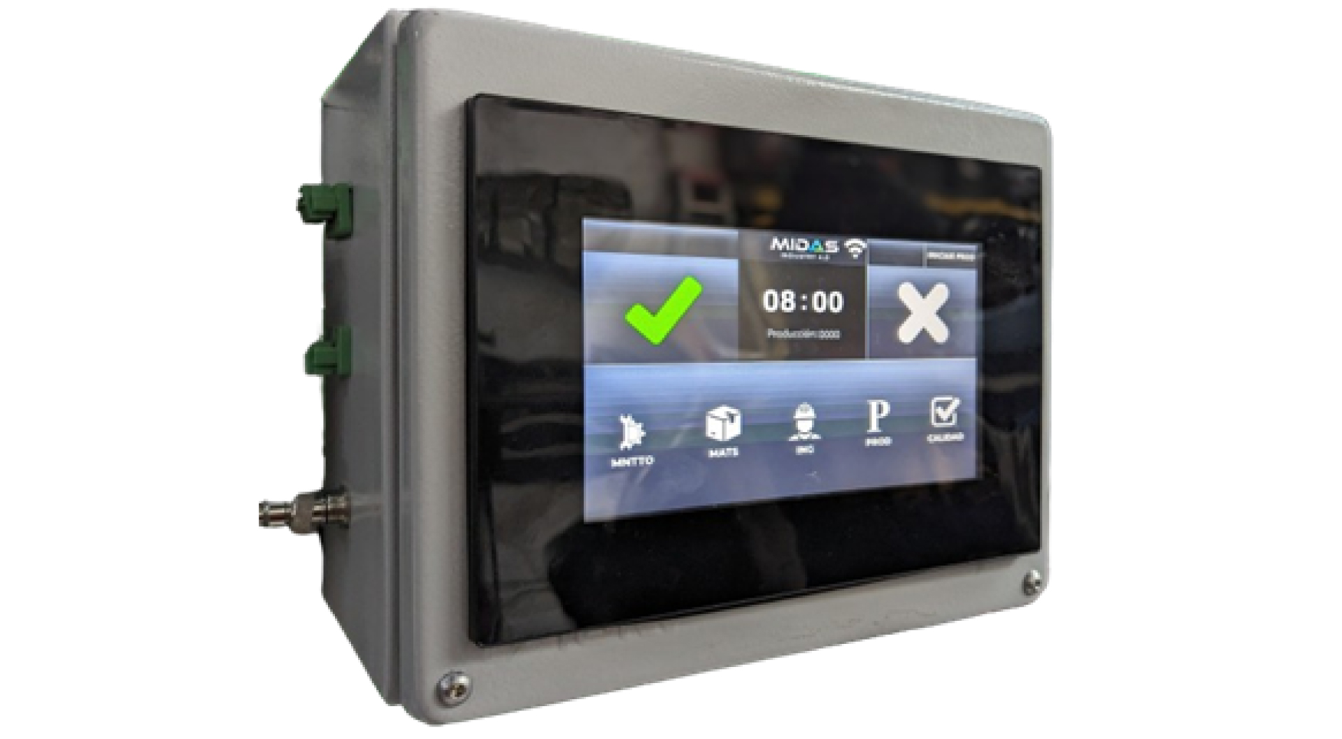 Actua como un semáforo inteligente que permite evaluar la duración de los eventos, el tiempo de respuesta y los paros provocados por diferentes causas en los procesos productivos. Tambiénn lleva la contabilidad de las piezas producidas.